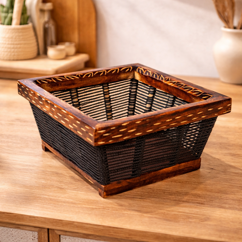 Add a touch of elegance to your dining space with this beautifully handcrafted wooden fruit basket. Designed with a premium wooden frame and stylish woven sides, this basket combines durability with aesthetic appeal. Perfect for storing fresh fruits, vegetables, or even as a decorative centerpiece for your table.
