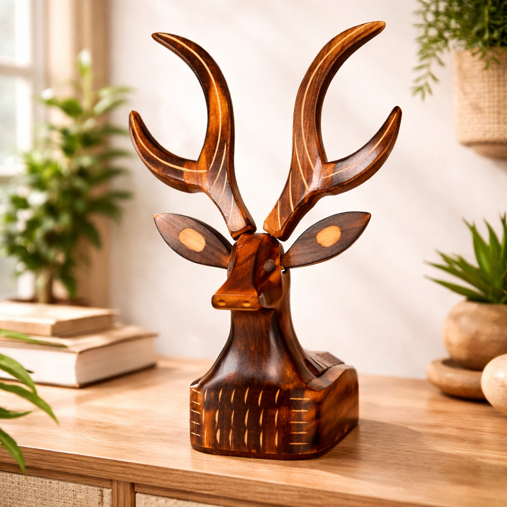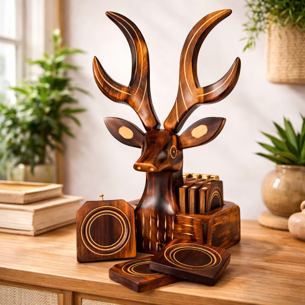 This beautifully crafted wooden deer coaster set adds a modern and artistic touch to your home decor. The elegant deer-shaped holder makes it a standout piece.